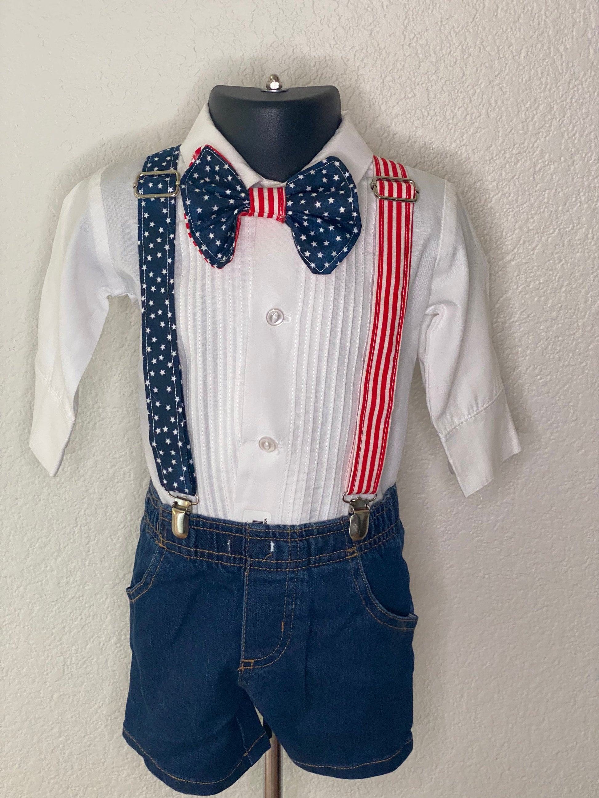 DESCRIPTION ✓ Patriotic Theme ✓ Suspenders & Bow Tie ✓ Large Selection Of Sizes