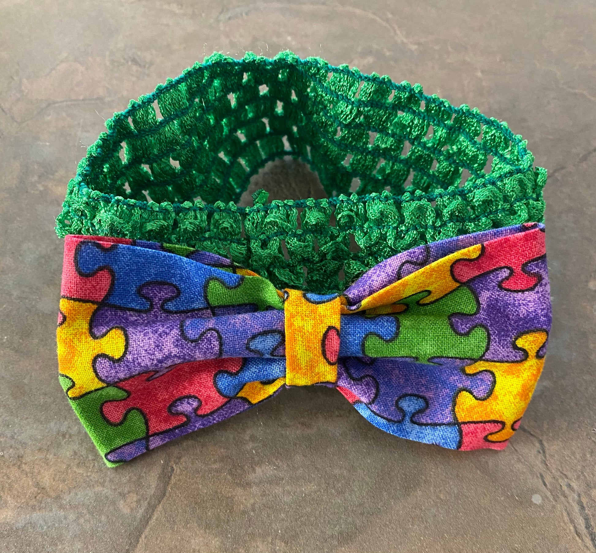 Autism Awareness bow tie and suspenders or Hair Bow Headband Barrette