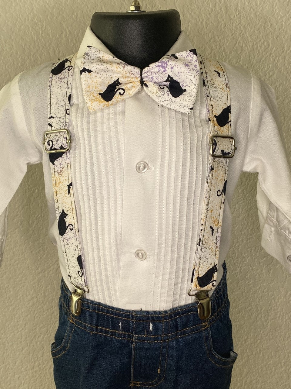 Halloween Black Cat suspenders and bow tie / Infant, Toddler, Child, Teen, Adult, Big & Tall