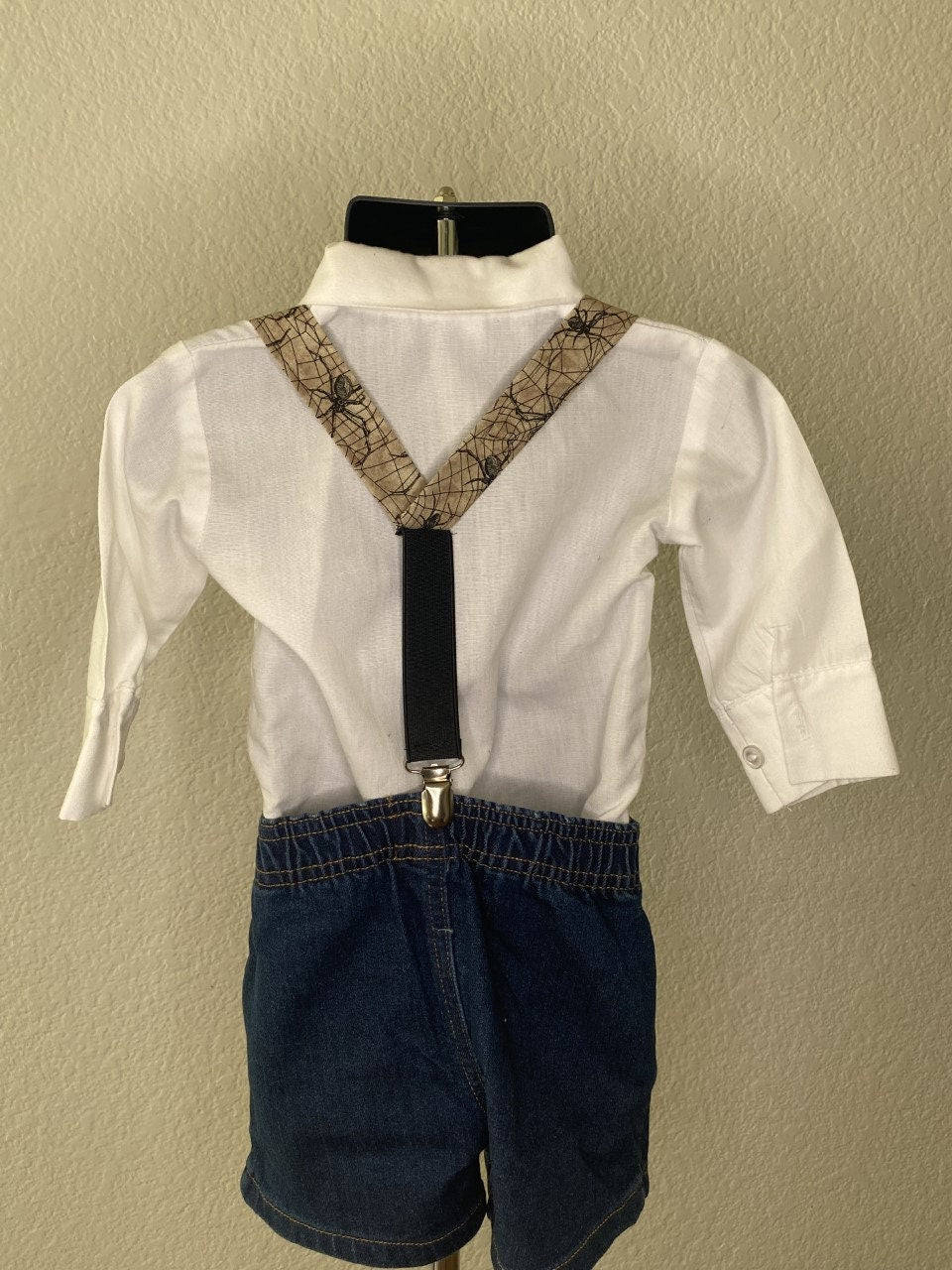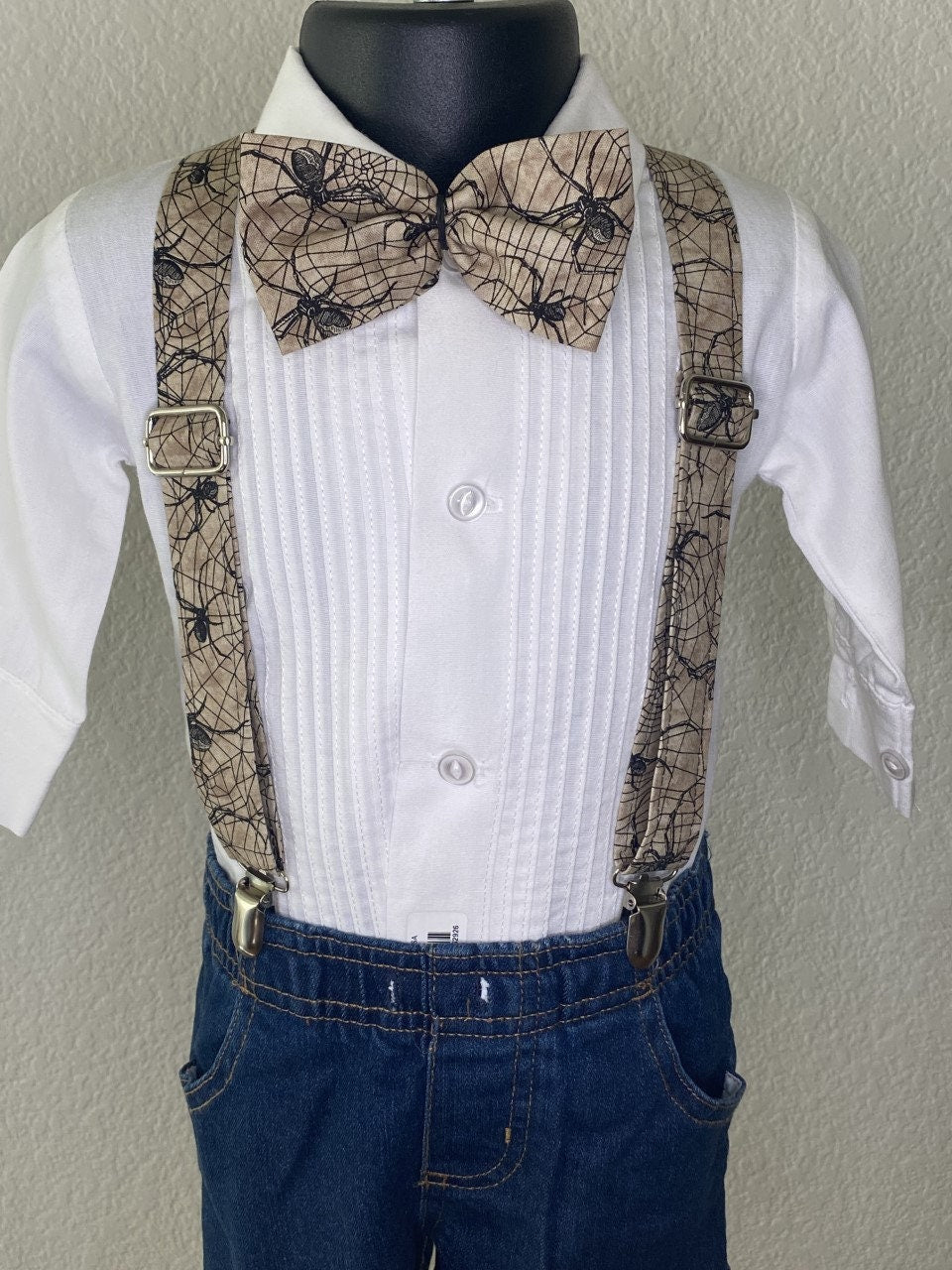 Halloween Scary, Creepy Spider and Web suspenders and bow tie / Infant, Toddler, Child, Teen, Adult, Big & Tall