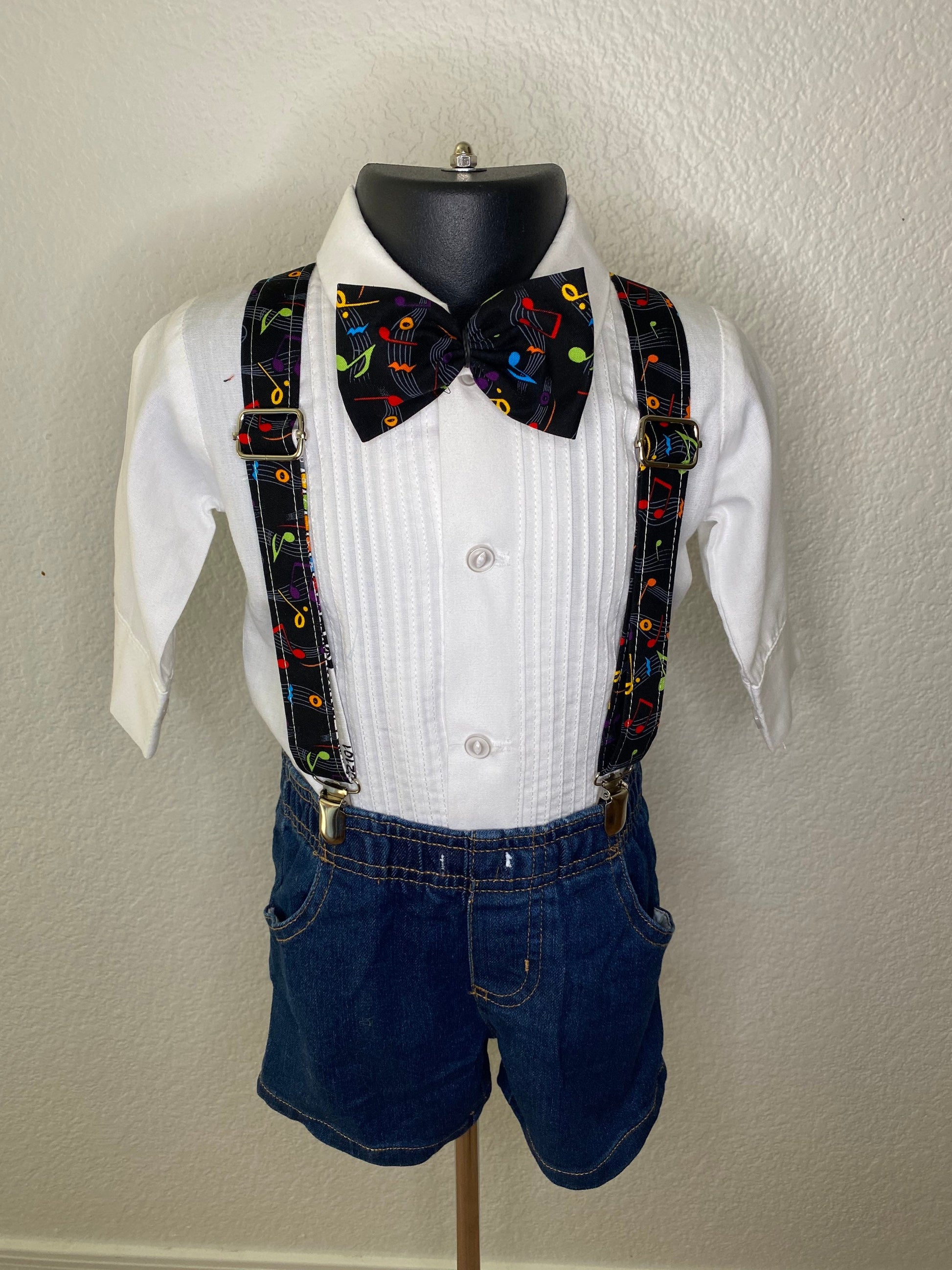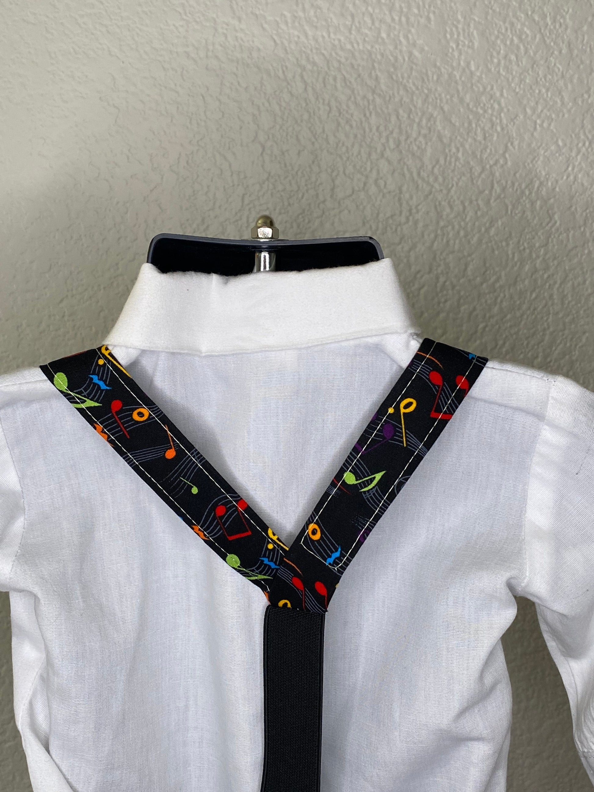 Musical note suspenders and bow tie / Infant, Toddler, Child, Teen, Adult, Big & Tall