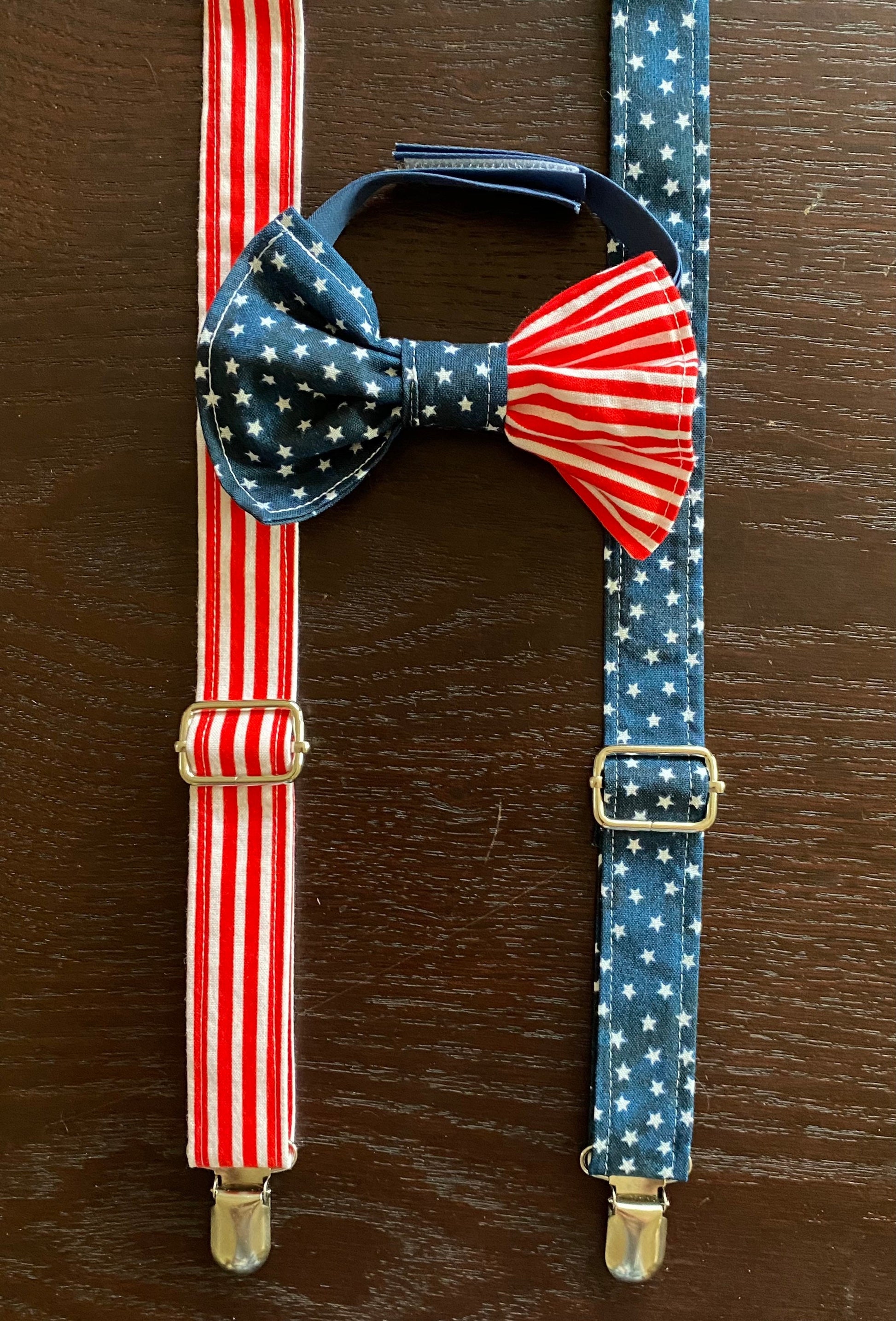 Patriotic American flag bow tie and suspenders custom bowtie all sizes made to order